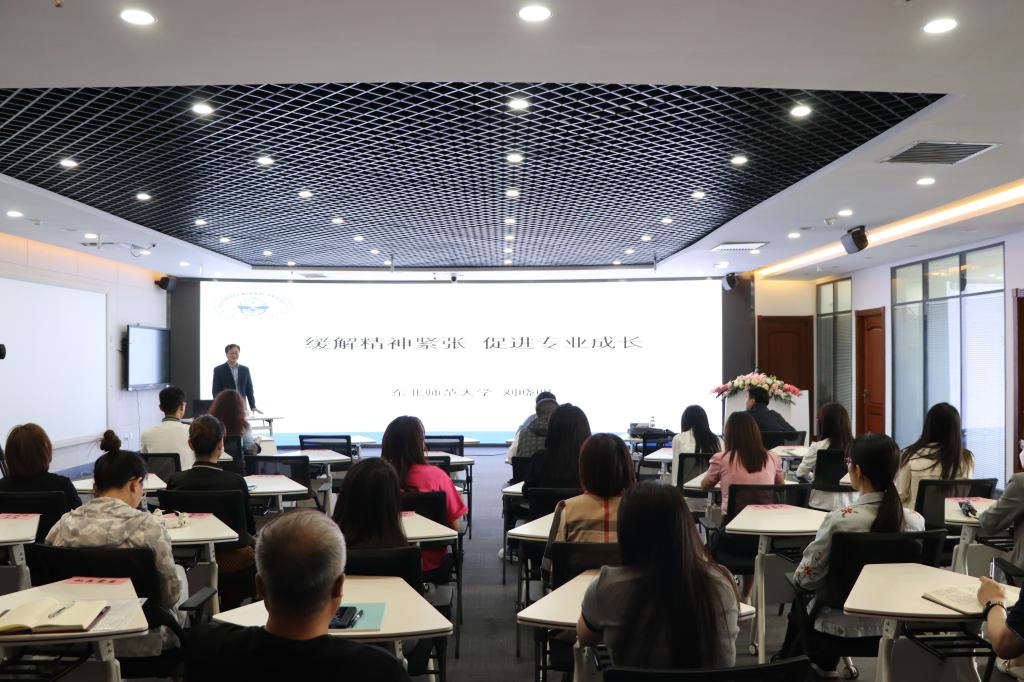 5月31日下午,学校举办“暖心•同行”教职工心理健康讲座,邀请东北师范大学心理学院博士生导师刘晓明教授作题为《缓解精神紧张 促进专业成长》专题辅导。讲座主会场设在教学综合楼1101室,各党总支(分党委)设分会场进行同步学习,全校教职工参加学习。