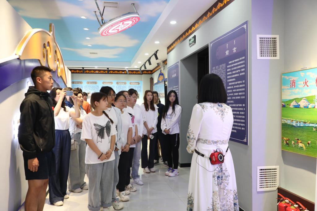 走进外形酷似蒙古军帐的前郭县非物质文化遗产展览中心——“宝格达”,其间陈列着琳琅满目的非遗展品、独具民族特色的首饰衣裙、造型各异的少数民族乐器。实践团成员在参观调研中进一步加深了对非物质文化遗产、蒙元文化的理解。