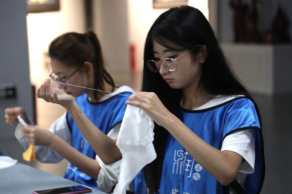 伴随着郭尔罗斯布艺代表性传承人徐卉导师讲解传统布艺发展历程,实践团同学们零距离接触了布艺制作,在一针一线中感受非遗的魅力。