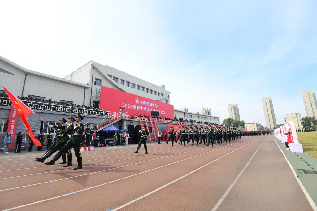 上午9时30分,嘹亮的《歌唱祖国》响彻校园上空,60名2023级同学组成的国旗班动作整齐、脚步铿锵。军训成果检阅大会在庄严的升旗仪式中拉开帷幕。刘多宣布分列式开始。