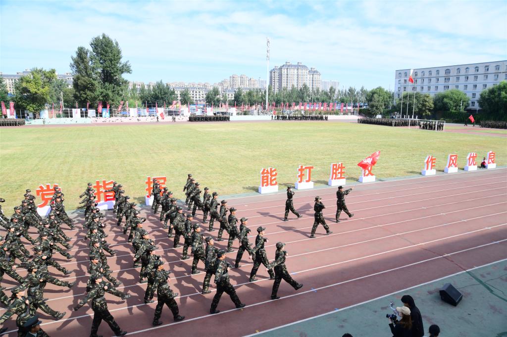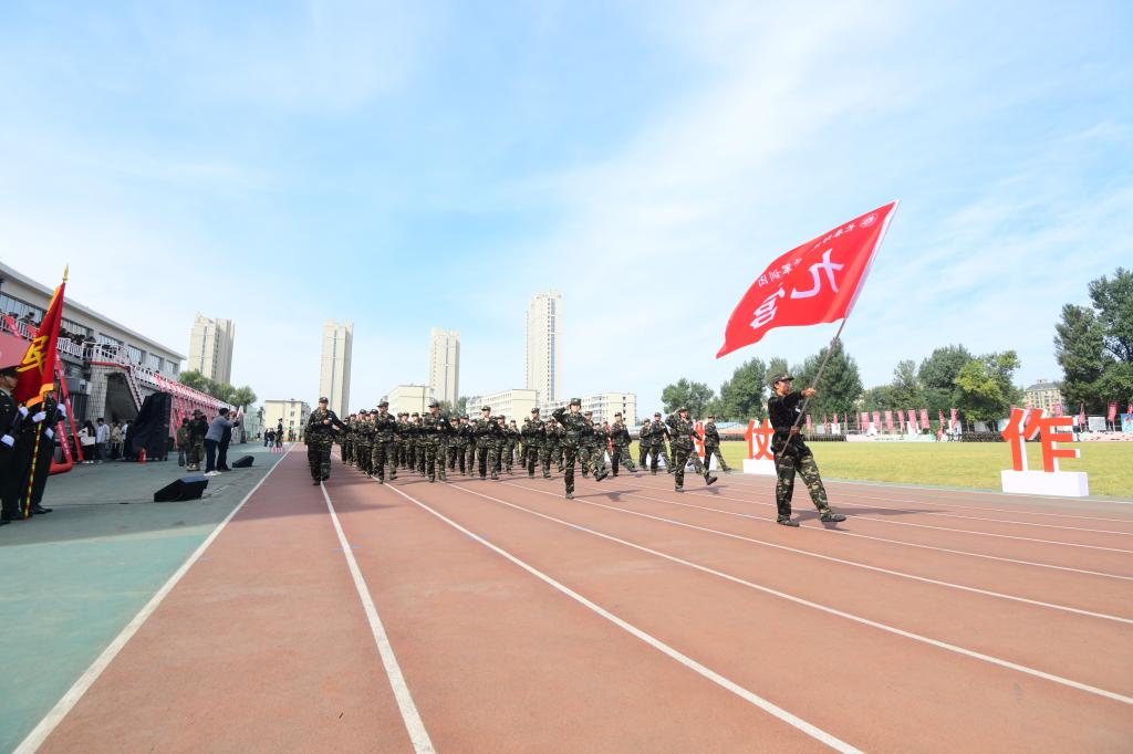 全体新生身着迷彩、步伐坚定,19支方队依次走过主席台接受检阅。同学们精神饱满、斗志昂扬,口号响亮、气势雄壮,充分展示了我校学生的铮铮铁骨和飒爽英姿,彰显了长师学子的优良品质和奋发向上的进取精神。