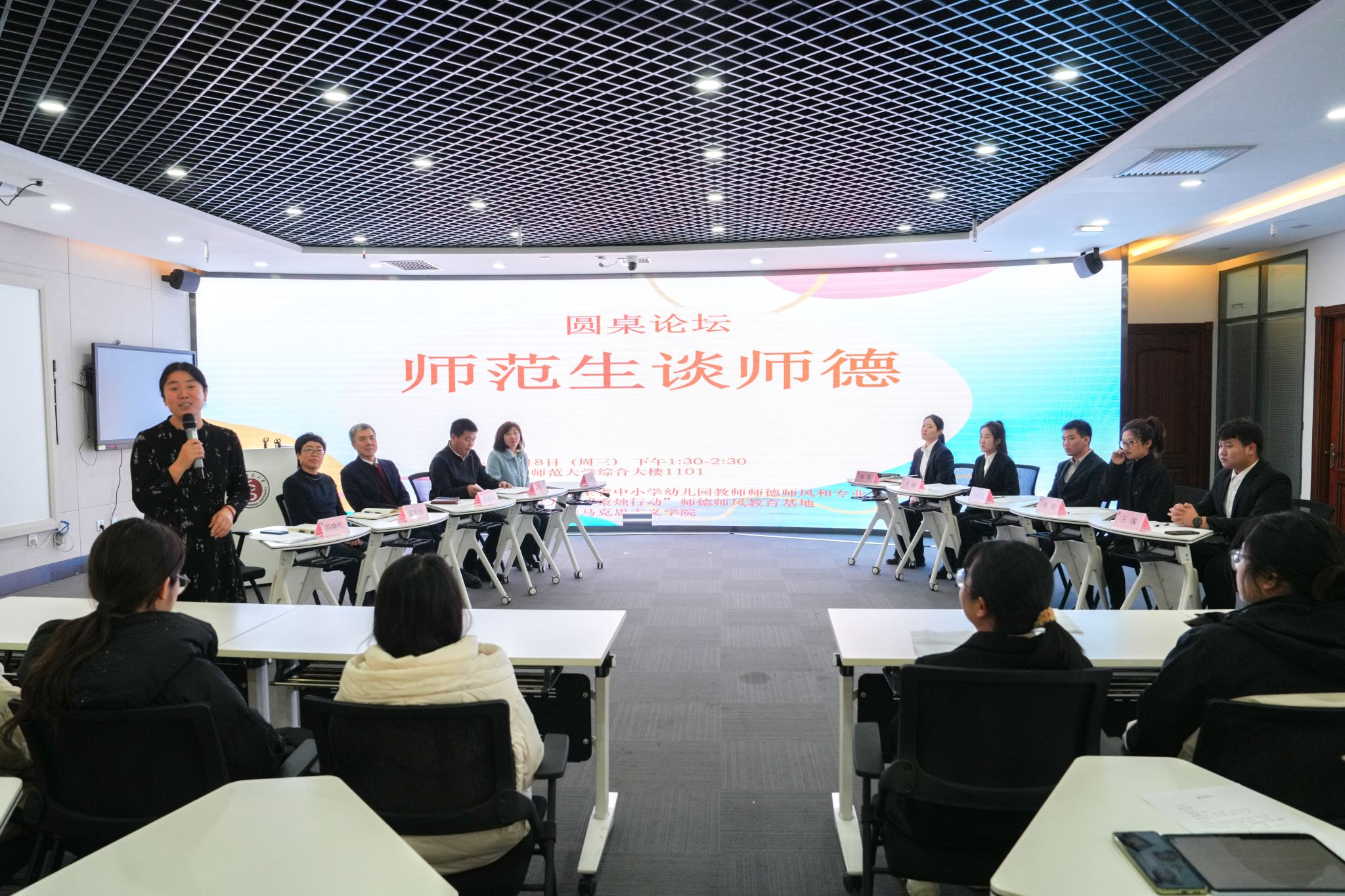 11月3日下午,我校全省中小学幼儿园教师师德师风和专业发展研究中心、“秉烛行动”师德师风教育基地以及马克思主义学院在教学综合楼1101室举办“师范生谈师德”圆桌论坛。全省中小学幼儿园教师师德师风和专业发展研究中心负责人、副校长张德利出席论坛并讲话。