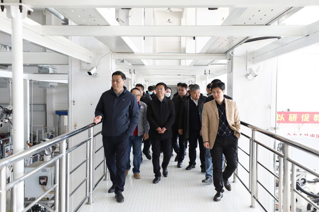 刘鹏飞一行参观了车路协同路试基地、汽车现代技术实训基地、职业教育东北国际认证基地等教学研发平台,现场考察了“产学研教学工作站”“钢铝点焊实训工作站”“红旗C095定点区教学岛”“红旗智能制造零部件数字化工厂”“智能制造协同创新中心”等教学单位,认真听取了一线教师的介绍,仔细询问了专业课程设置、项目化教学管理等工作开展情况,并查看教学研发仪器装备的功能演示。