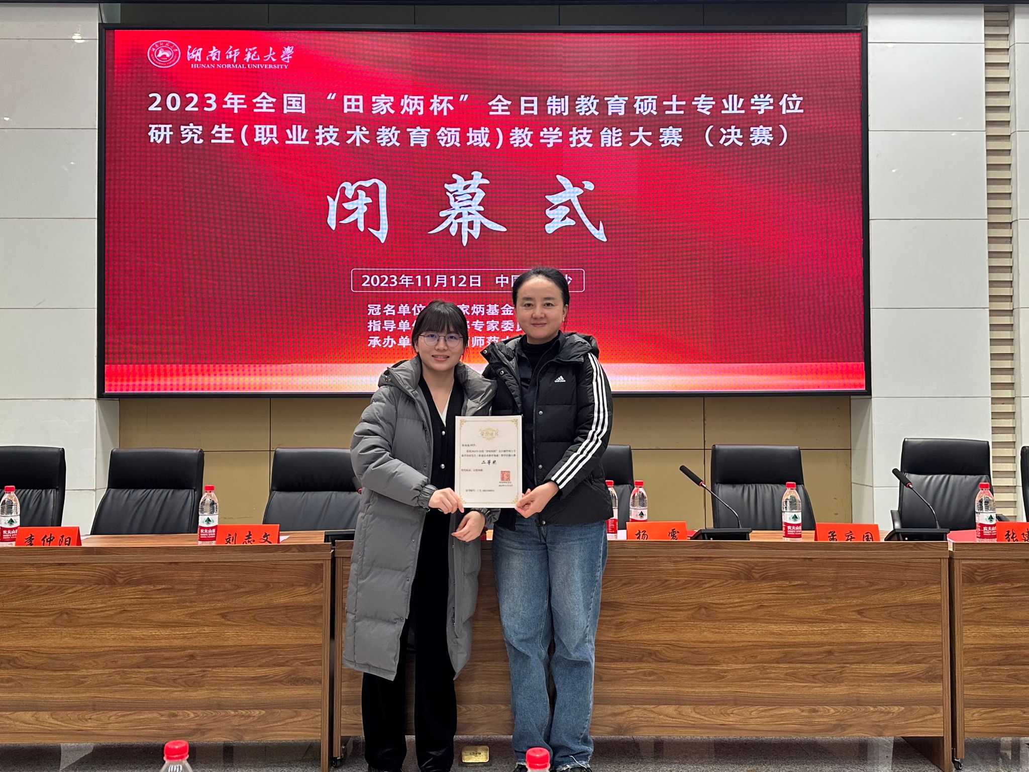 11月10日-12日,在“2023年全国‘田家炳杯’全日制教育硕士专业学位研究生(职业技术教育领域)教学技能大赛”决赛中,我校工程学院2022级硕士研究生陈艳艳斩获全国二等奖,工程学院指导教师蒋东霖荣获“优秀指导教师”荣誉称号。