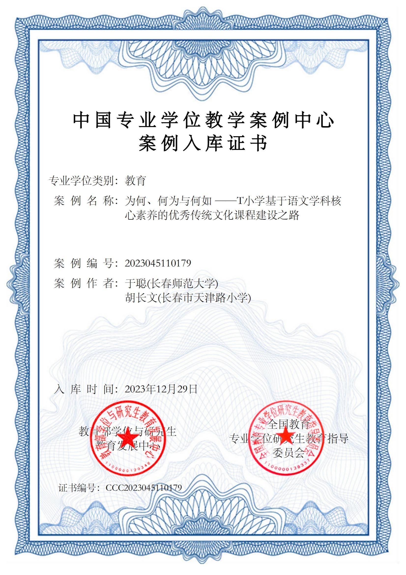 近日,在教育部学位与研究生教育发展中心和全国教育专业学位研究生教育指导委员会合作举办的第五届教育专业学位教学案例评审中,我校教育学院于聪与天津路小学胡长文共同编写的研究生教学案例“为何、何为与何如——T 小学基于语文学科核心素养的优秀传统文化课程建设之路”入选中国专业学位案例中心案例库。这是我校首个入选中国专业学位教学案例中心案例库的教育硕士专业学位教学案例。