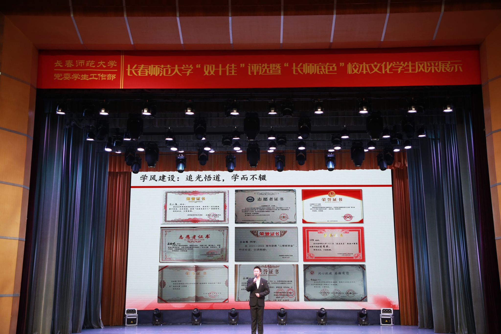 多年来,学校积极探索思想政治教育工作的新模式、新理念,注重通过“五育并举”教育理念提高人才培养的针对性和实效性。此次活动的开展呈现出长师学子“勇担使命的理想信念、敢为人先的青春志向、甘于奉献的志愿精神、桃李成蹊的师者情怀、青出于蓝的青年担当”,发挥了先进典型在思政教育工作中的示范引领作用,更切实展示出“长师底色”校本文化的育人效果。