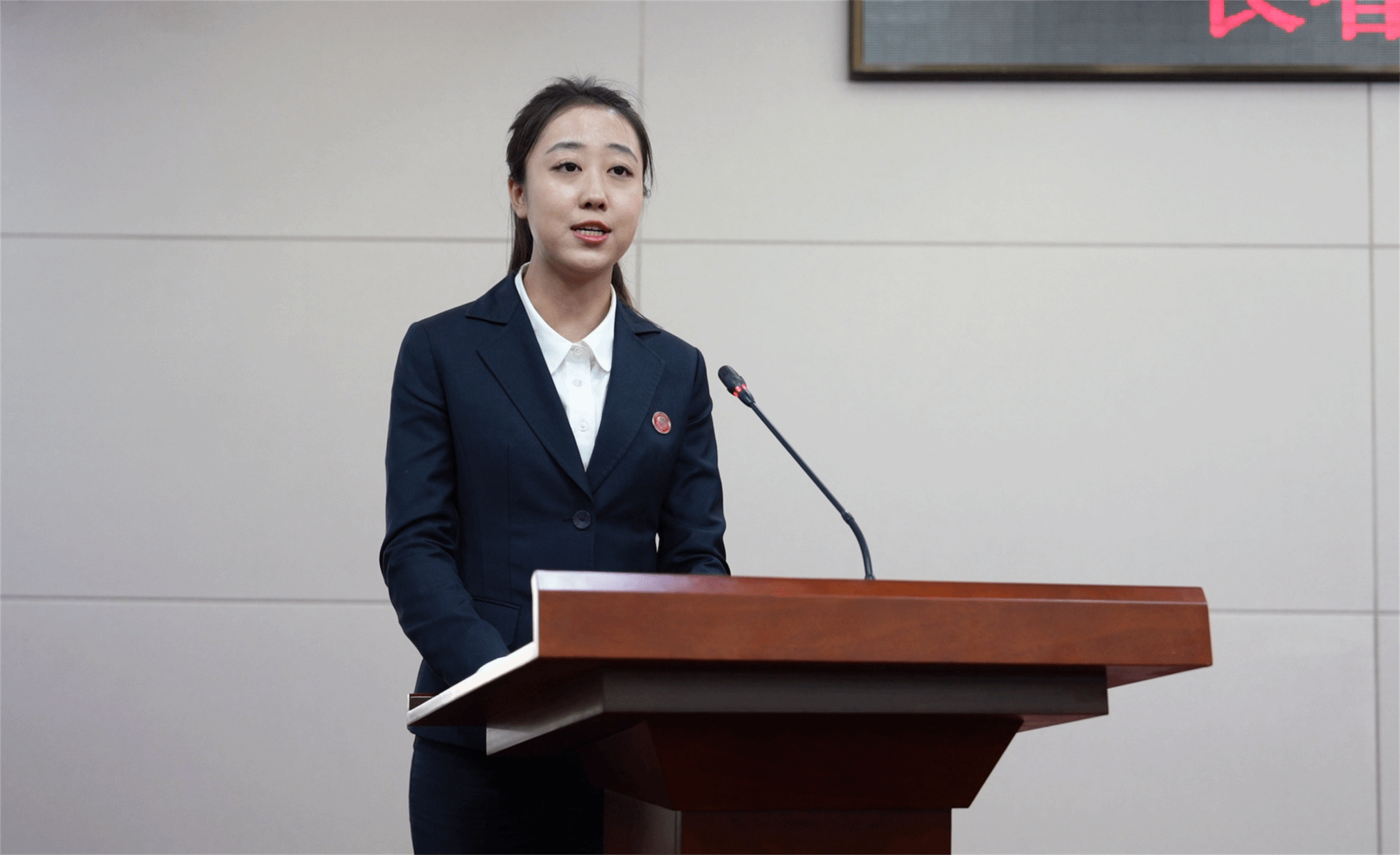 王延明为青马学员佩戴青马徽章。