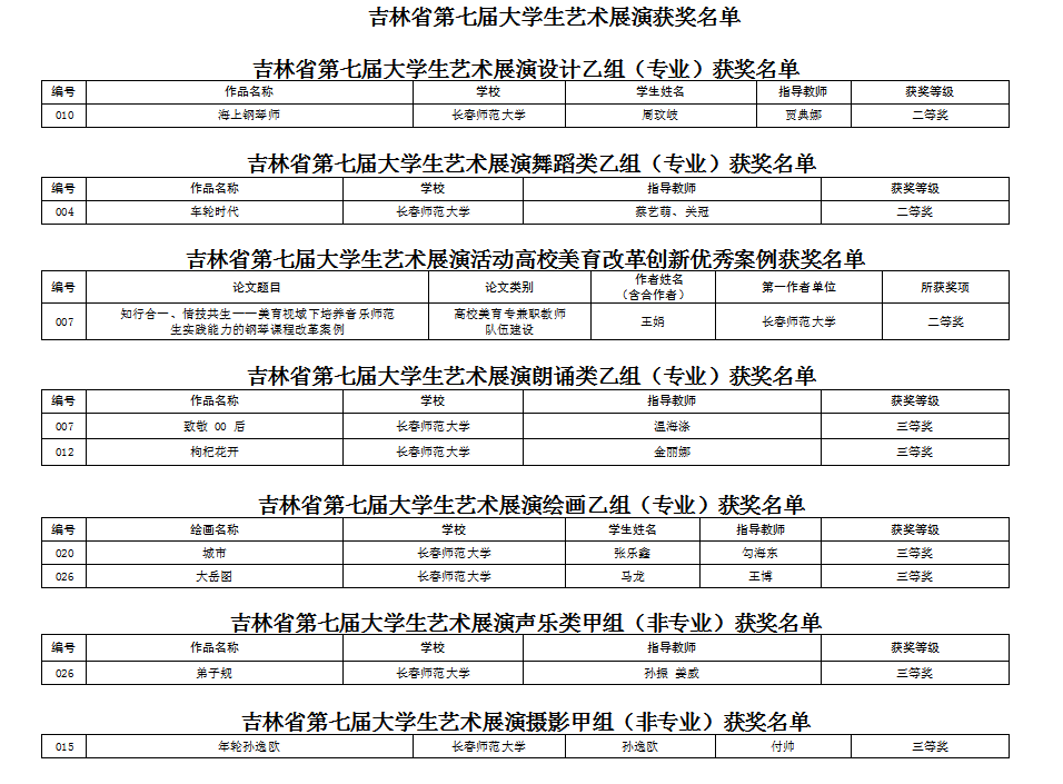 近日,在由吉林省教育厅主办的全省第七届大学生艺术展演活动评选中,在参赛的全省60所高校、1842个项目中,我校荣获二等奖3项、三等奖6项,学校荣获“优秀组织奖”,凸显了我校在文化育人领域的显著成效。