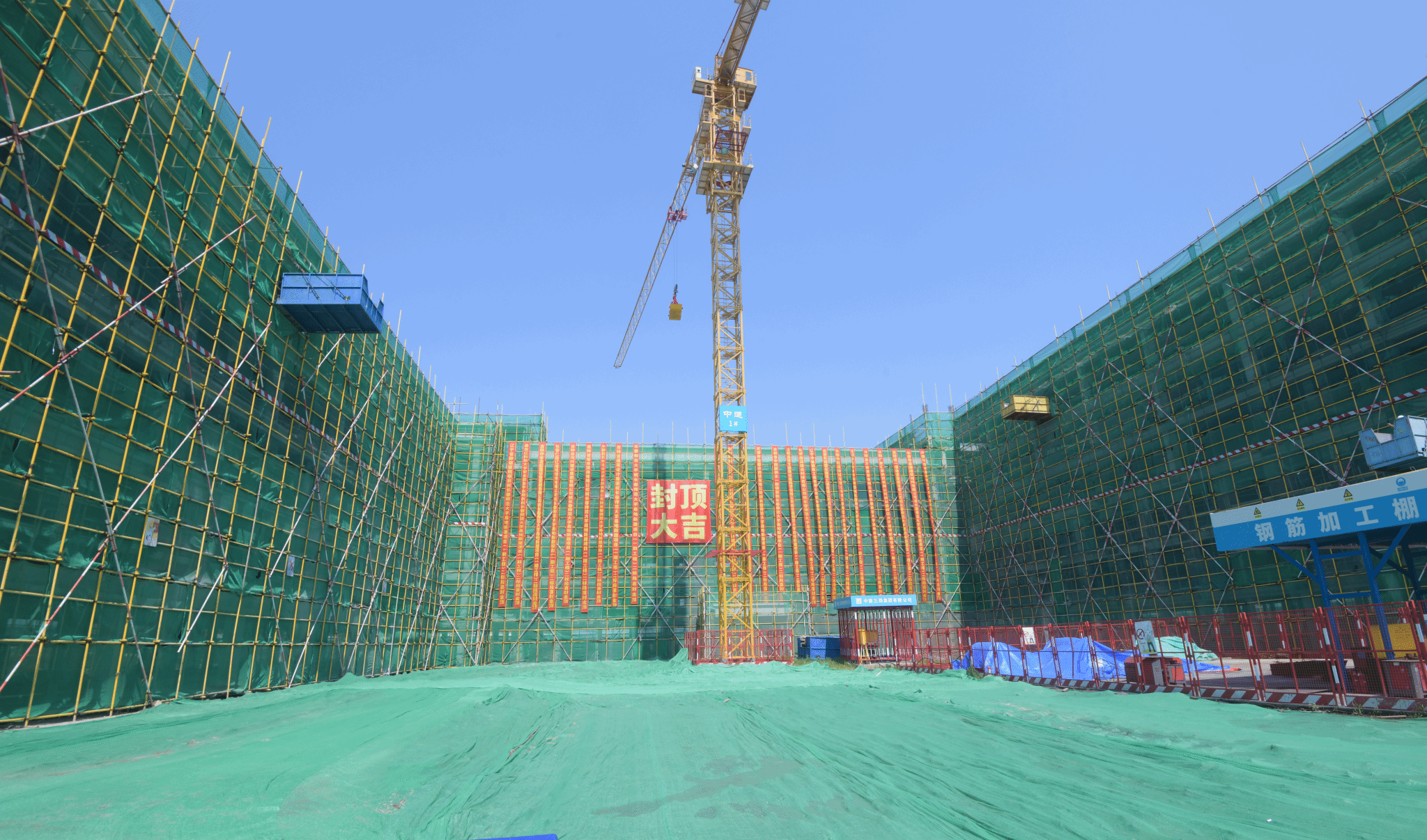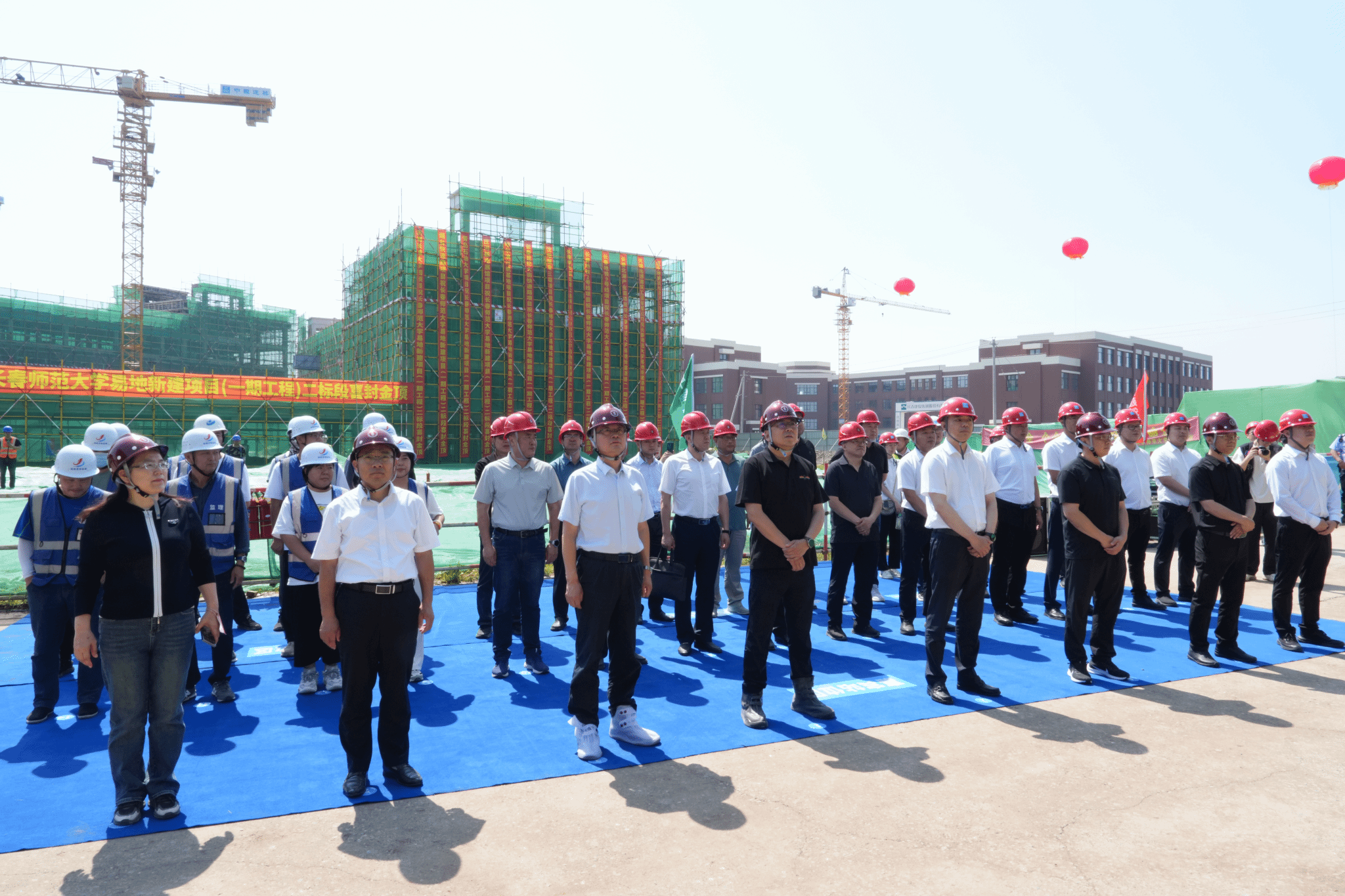 夏条绿已密,朱萼缀明鲜。7月9日,学校新校区建设现场塔吊矗立,礼炮齐鸣。随着最后一罐混凝土浇筑完成,新校区一期工程二标段6栋宿舍全部封顶。