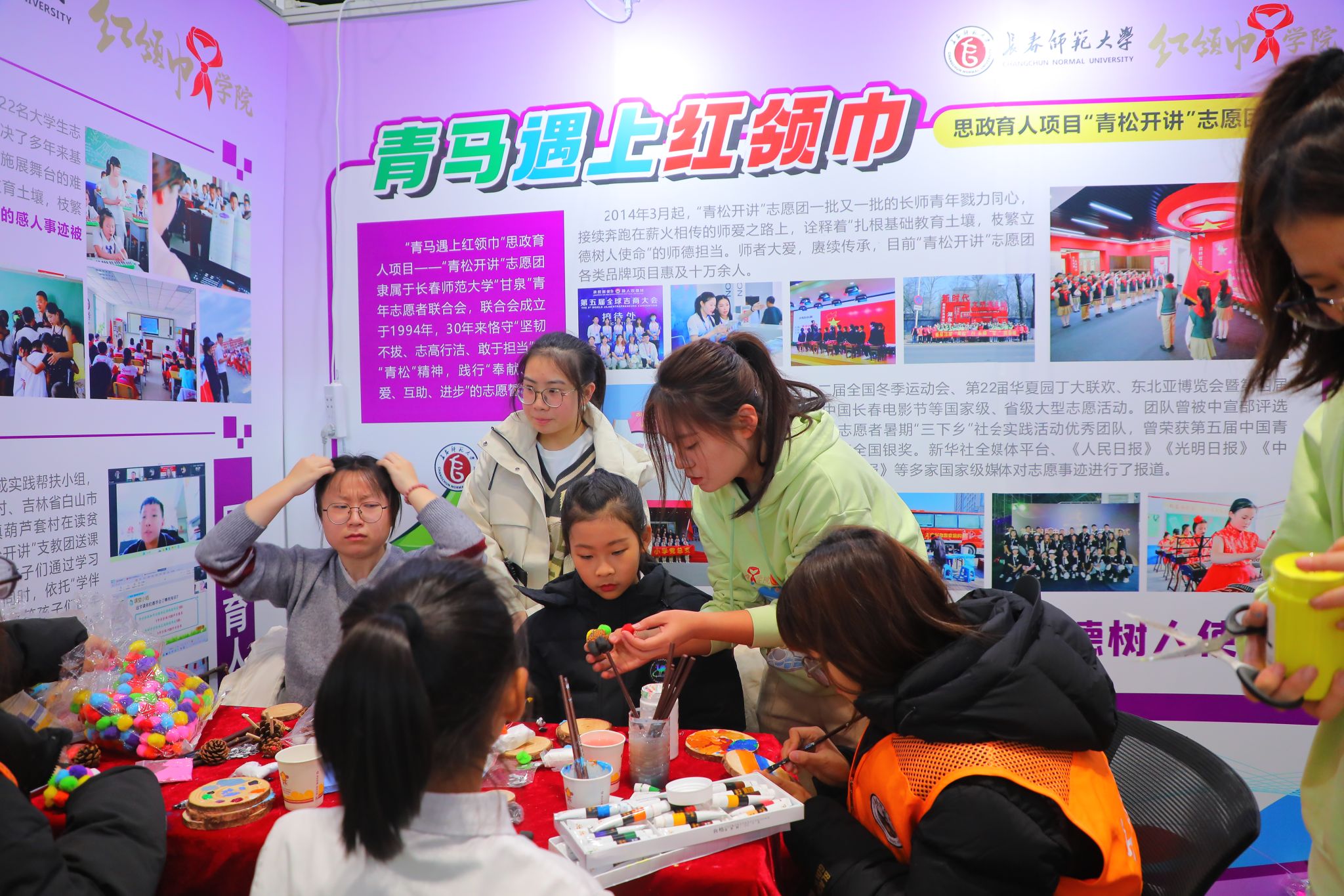 据悉,本次活动为期2天,我校“青松开讲”志愿团21名志愿者参与其中。“青松开讲”志愿团依托吉林省红领巾学院,以“青马遇上红领巾”思政育人项目为核心,项目展示涵盖五育课堂、弘毅文艺支教、乡村教育帮扶、特殊关爱教育、公益普法宣传、红色舞台剧进军营等特色志愿服务活动。同时,结合我校育人项目品牌,精心打造特色手工展示区、松果制作体验区、松针茶品鉴区和文创义卖摊位。