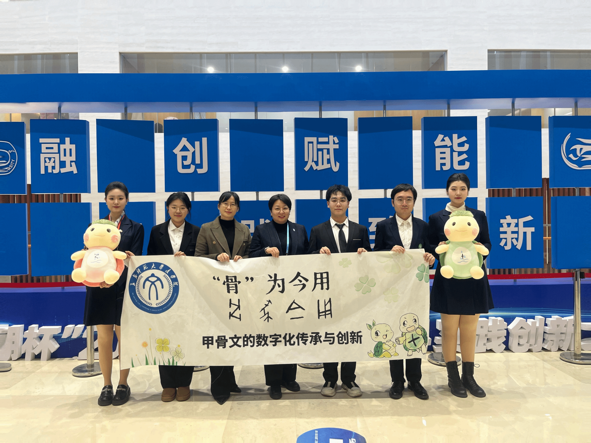 12月22日,在“浪潮杯”2024年大学生新文科实践创新大赛总决赛中,由我校文学院指导教师于为、杜若松、王中南带队的“ ‘骨’为今用——甲骨文的数字化传承与创新”项目组荣获全国银奖。
