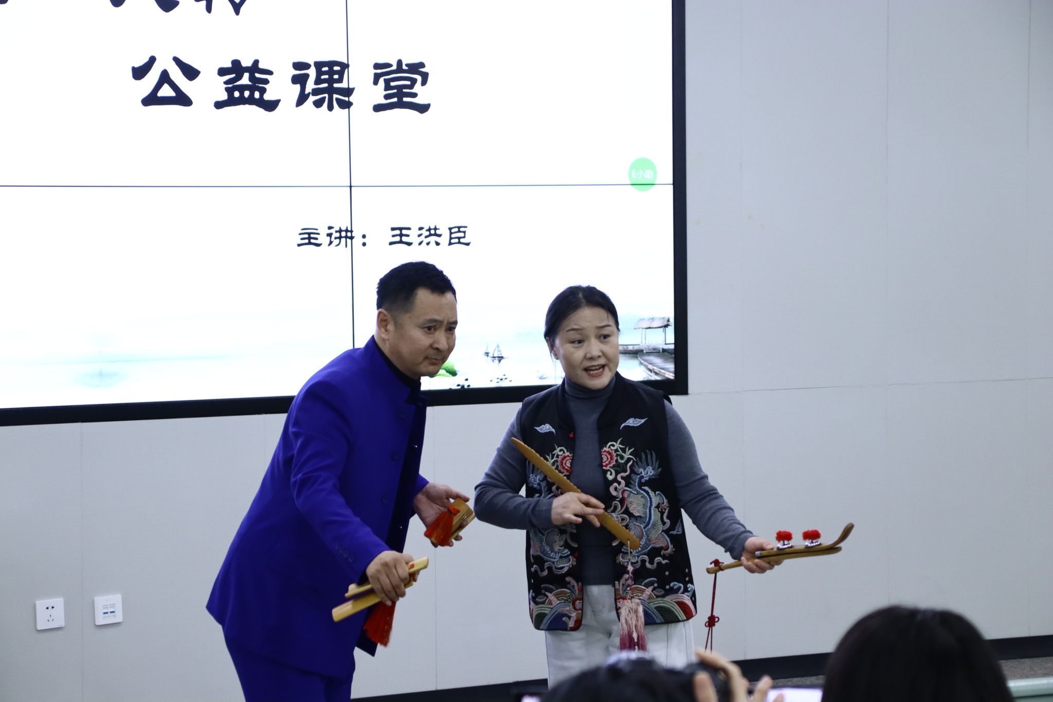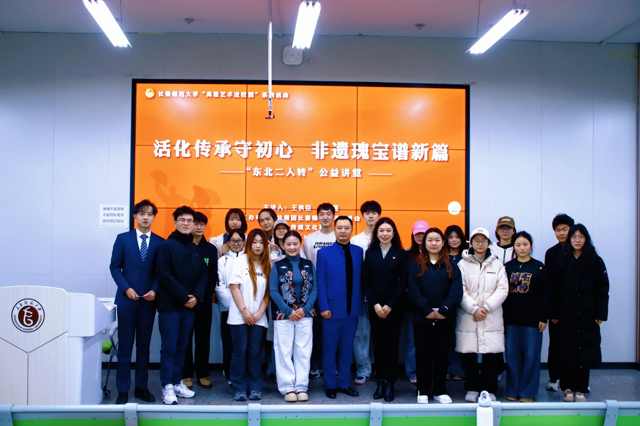 3月12日,为弘扬中华优秀传统文化,推动非物质文化遗产活态传承,校团委依托中华传统文化社团开展 “高雅艺术进校园———东北二人转”公益课堂活动,特邀吉林省非物质文化遗产代表性传承人王洪臣、吉林省戏曲剧院李玉莲两位老师授课。