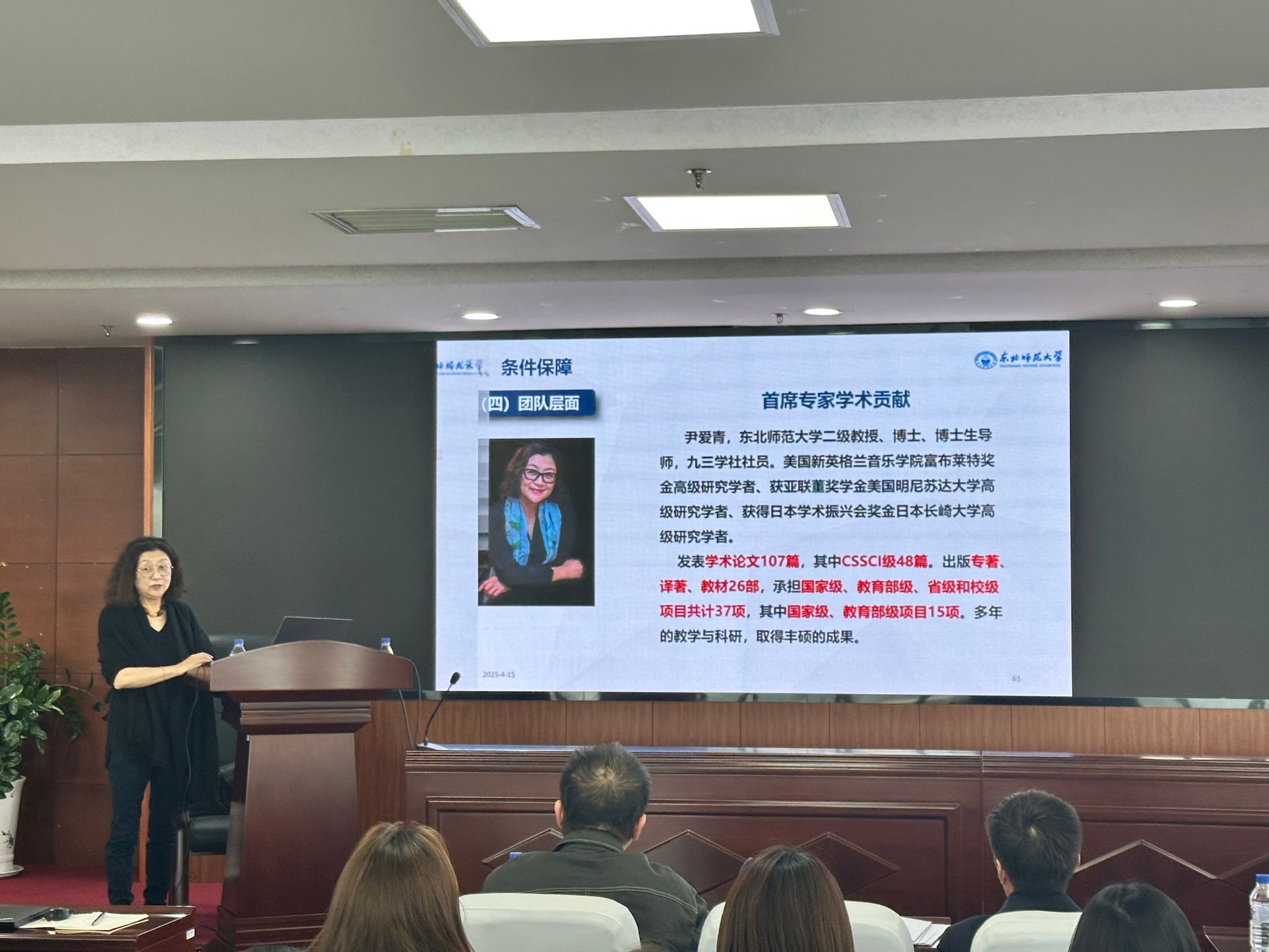 4月15日,由学校党委统战部与音乐学院联合主办的“关于社科基金申报的思考”主题科研讲座在教学综合楼901会议室举行,特邀教育部艺术教育委员会常委、东北师范大学尹爱青教授担任主讲嘉宾。音乐学院院长郭春蓉教授主持会议,学院全体教师及硕士研究生参加讲座。