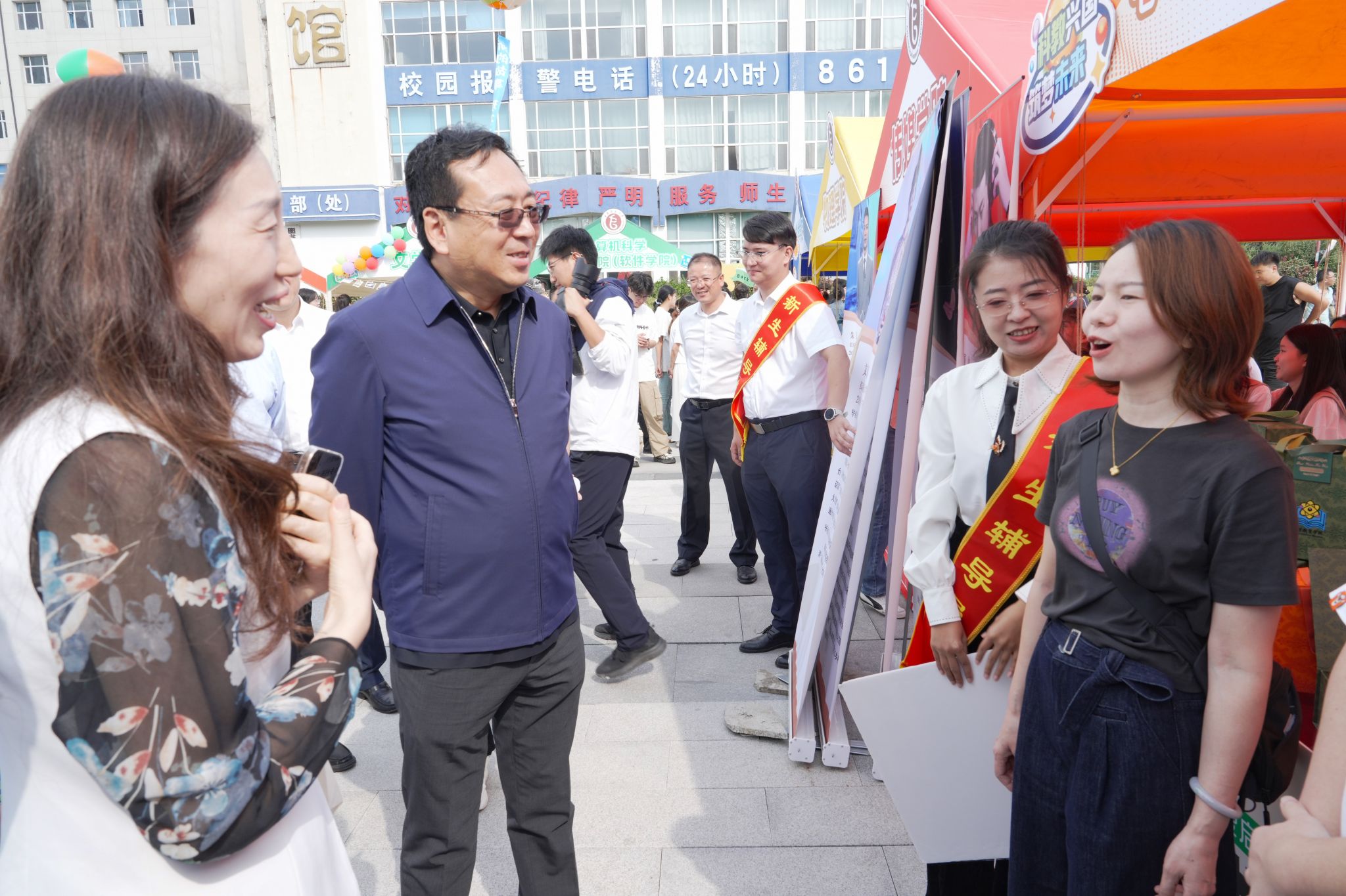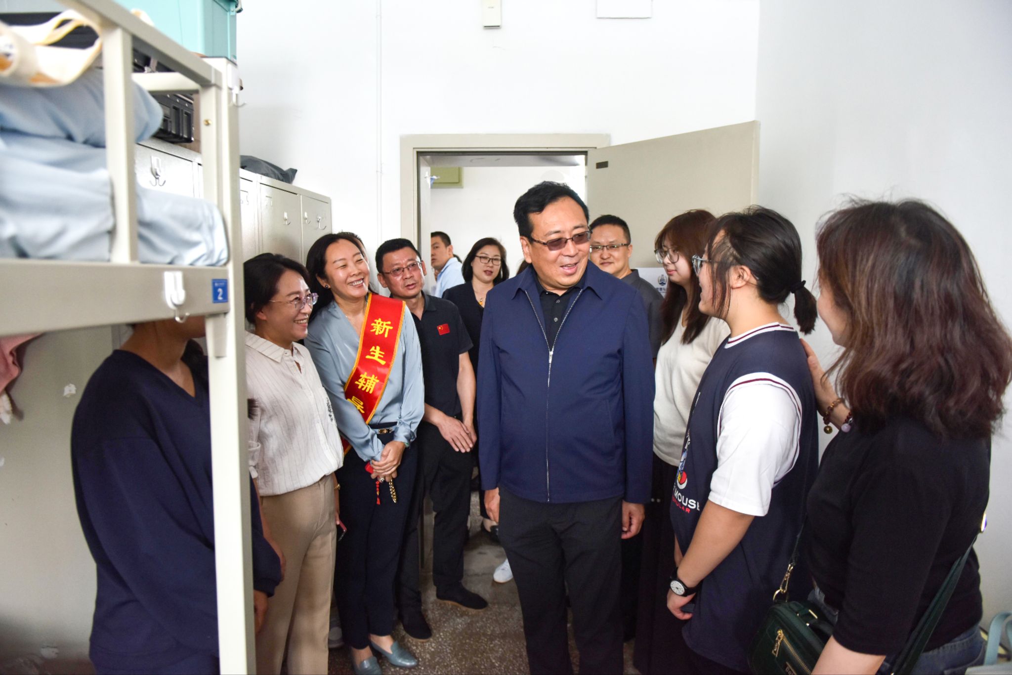 在乐群校区迎新工作现场,刘多一行详细了解新生报到流程、报到情况,并慰问各岗位迎新工作人员和志愿者。